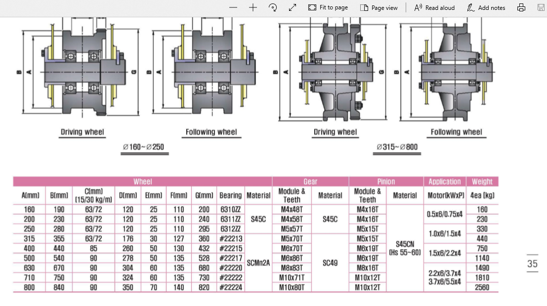 Đường kính mặt lăn: D160, D200,D250, D300, D315,D400,D450,D500,D630. Cho các loại cầu trục:Bánh xe cầu trục 1 tấn,Bánh xe cầu trục 2 tấn,Bánh xe cầu trục 3 tấn,Bánh xe cầu trục 5 tấn,Bánh xe cầu trục 7.5 tấn,Bánh xe cầu trục 10 tấn,Bánh xe cầu trục 15 tấn,Bánh xe cầu trục 20 tấn,Bánh xe cầu trục 30 tấn,Bánh xe cầu trục 50 tấn,....
