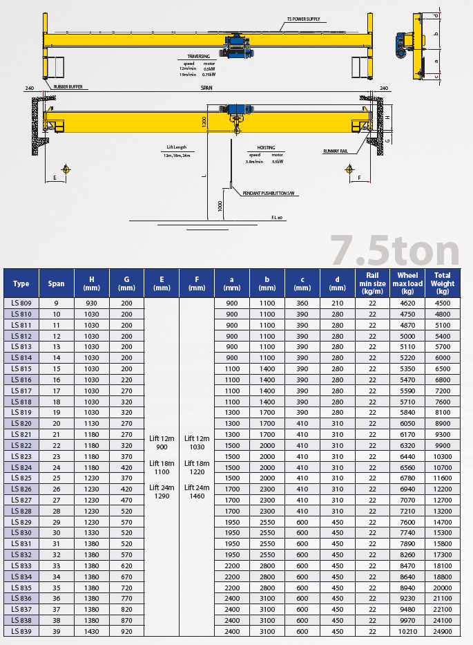 THÔNG SỐ KỸ THUẬT CẦU TRỤC 7.5 TẤN