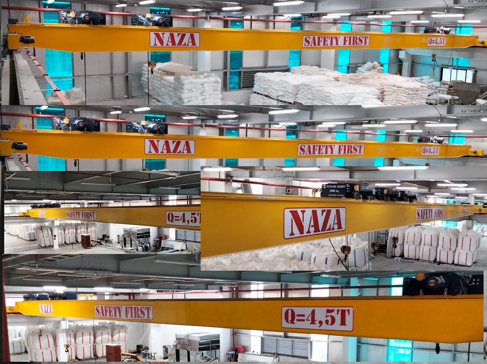 Cầu trục tại Hưng Yên: Đây là loại 3 xe con chạy trên một cầu trục dầm đôi mà chúng tôi lắp đặt cho một nhà máy hạt phụ gia ngành nhựa